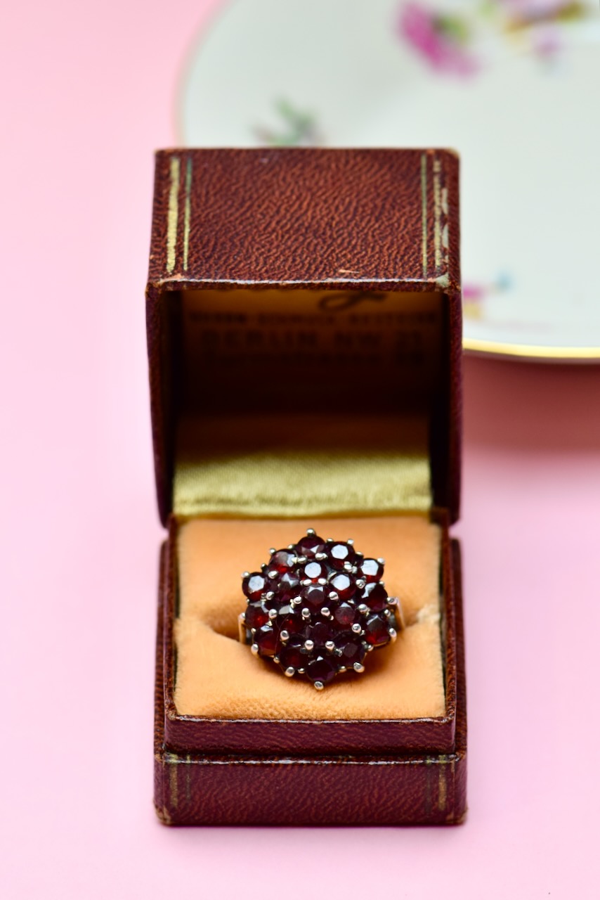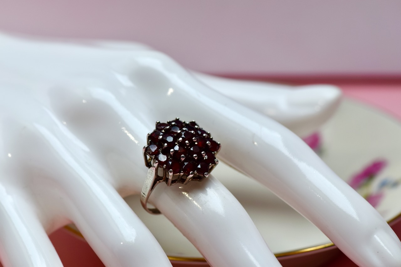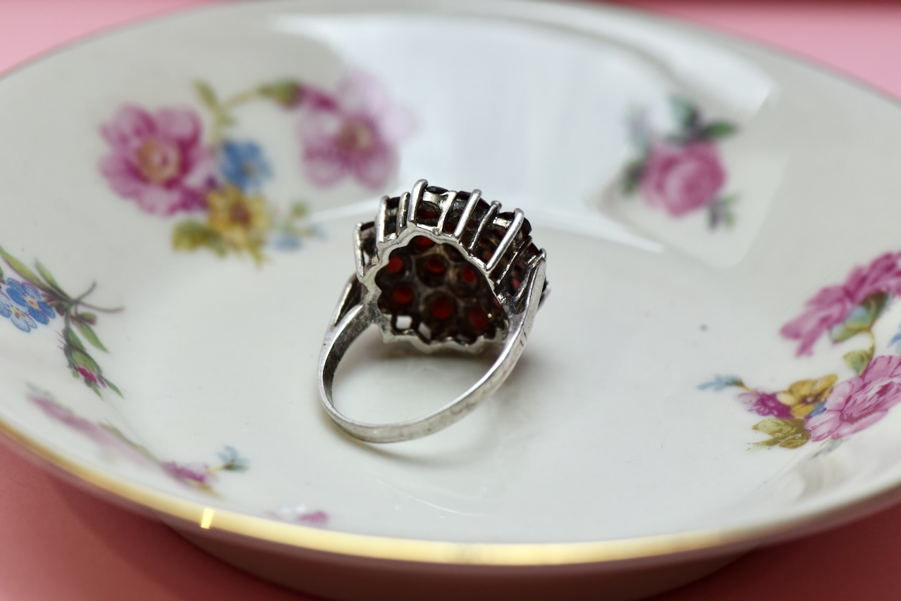 Przedwojenny skarb: pierścionek art deco z granatami.