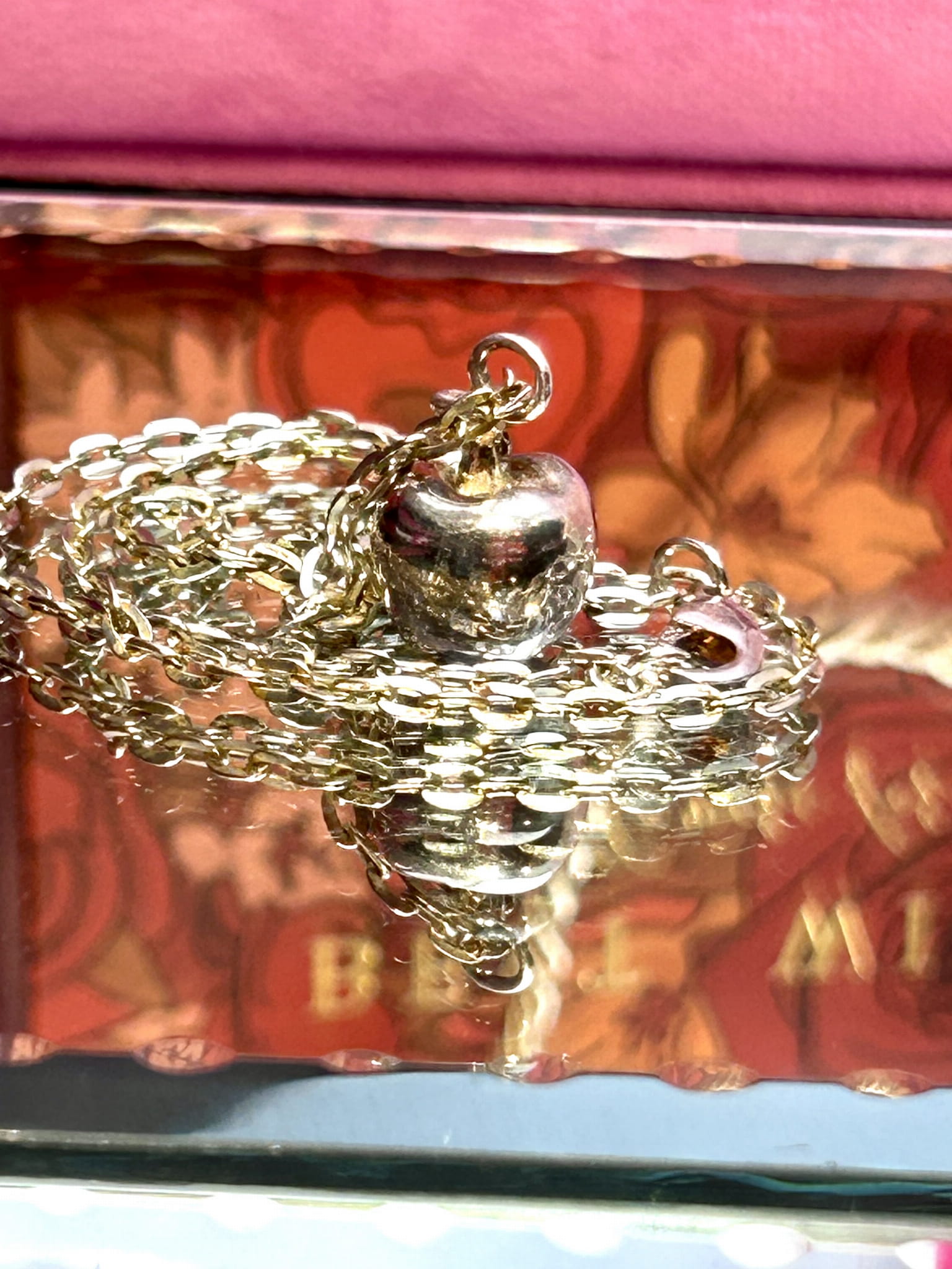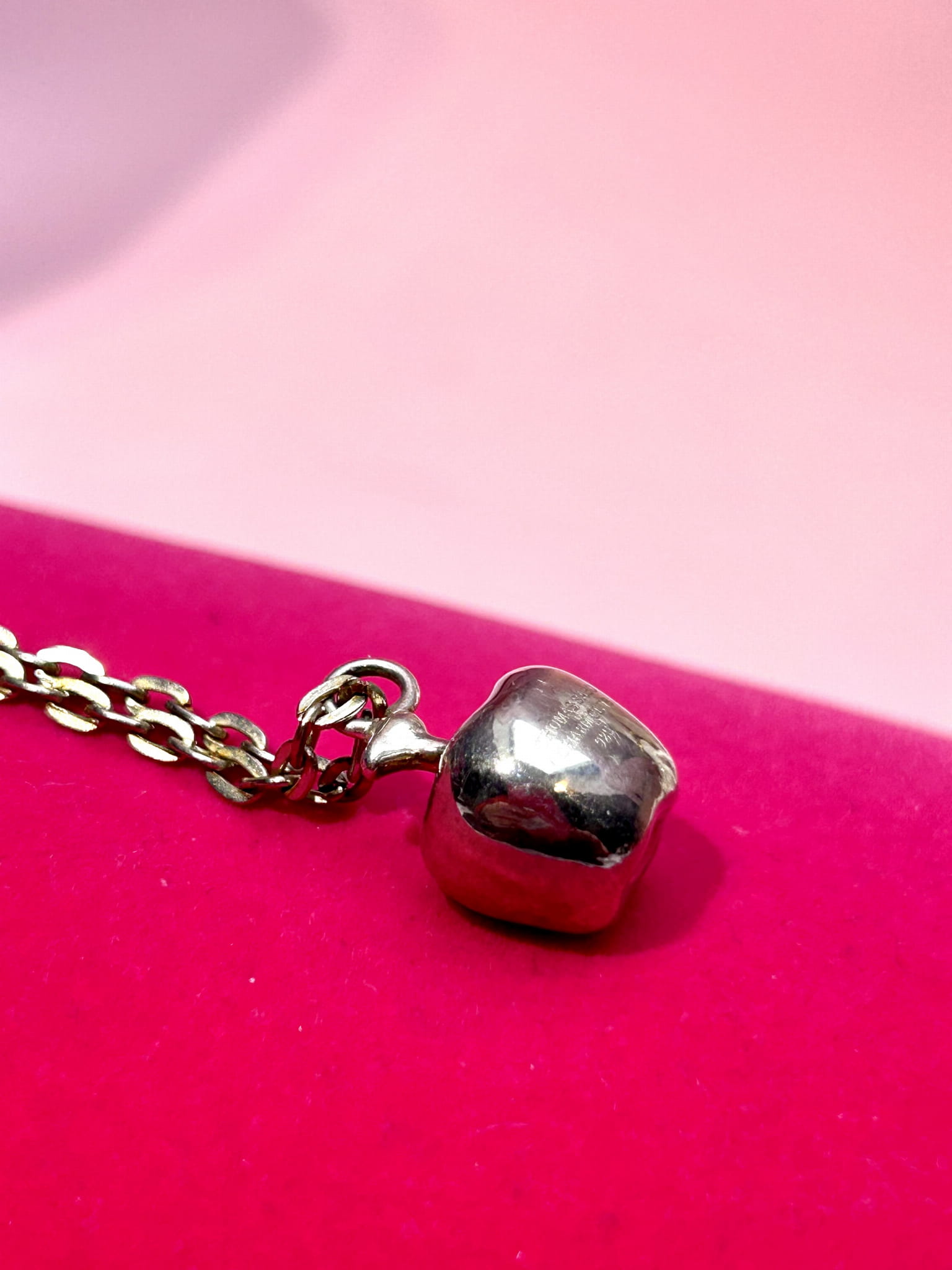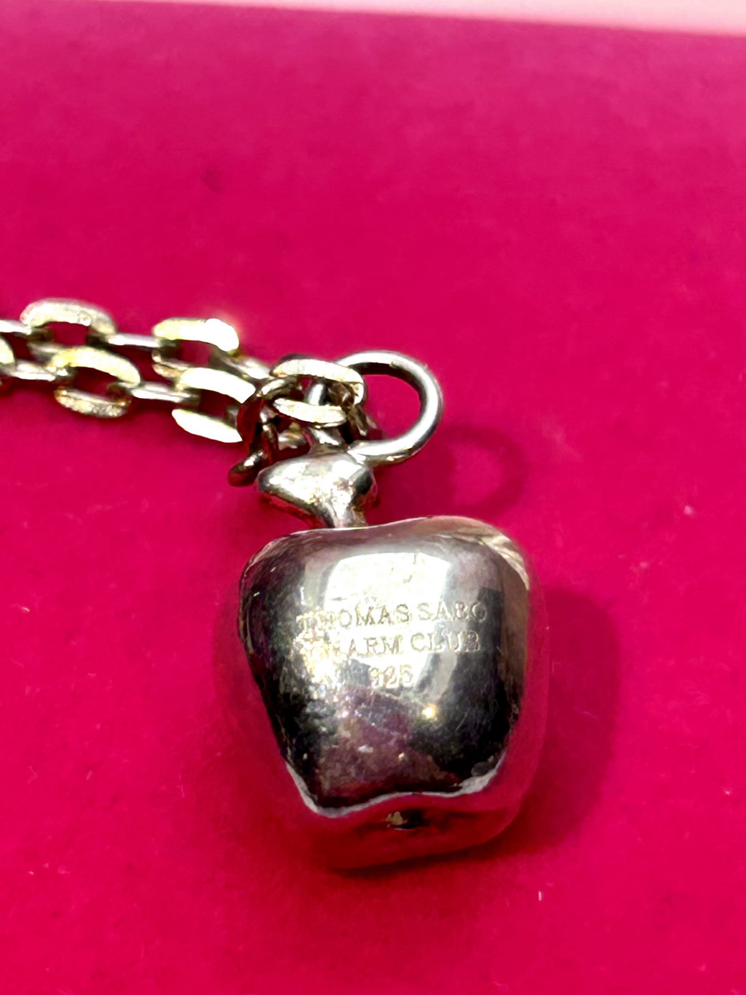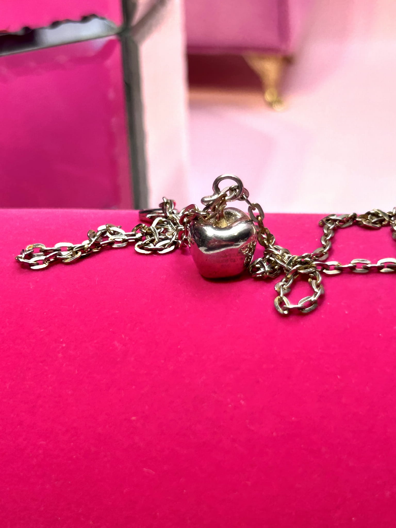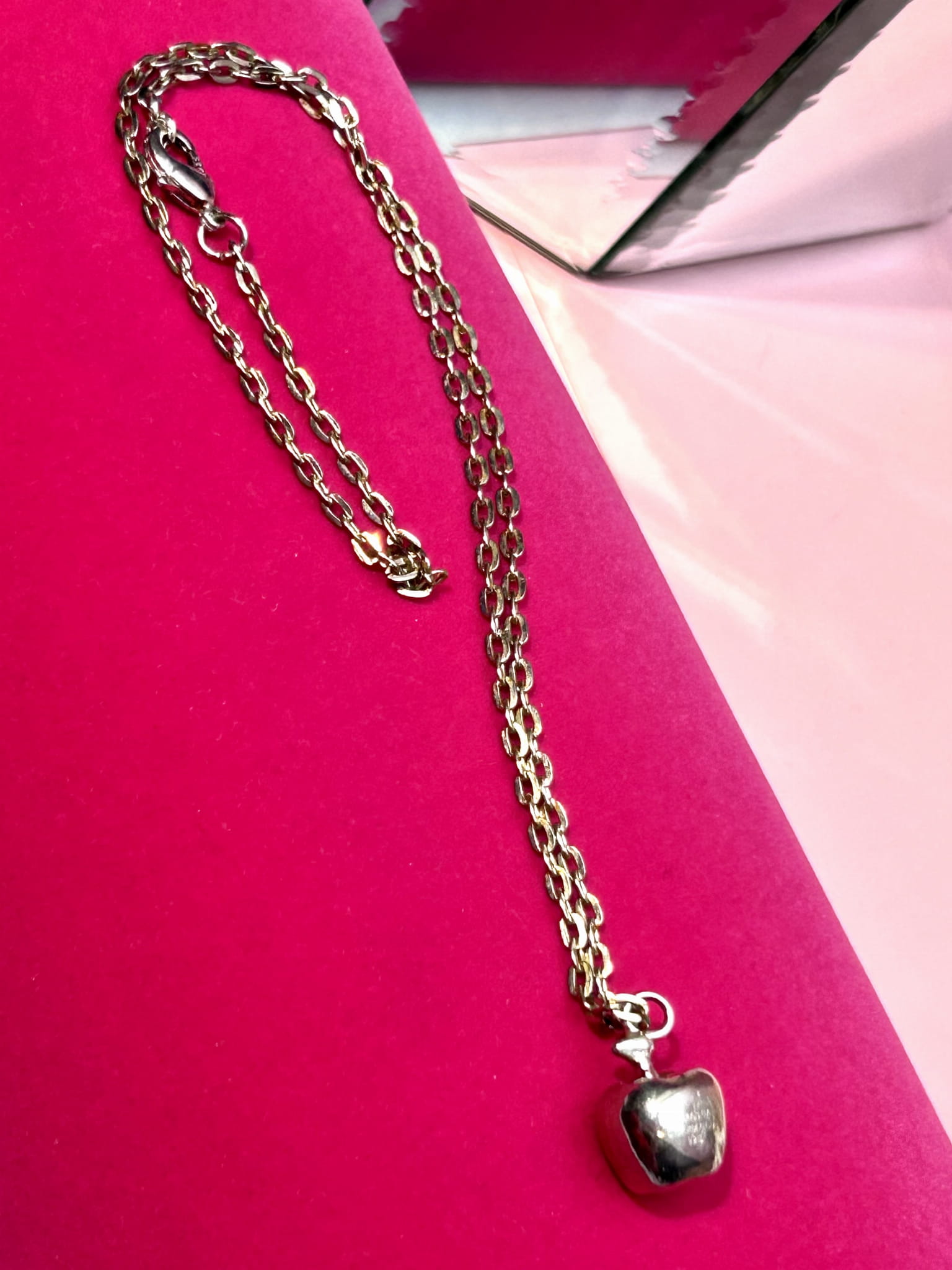 W komplecie łańcuszek o klasycznych, owalnych ogniwach oraz wisior - piękne jabłuszko.